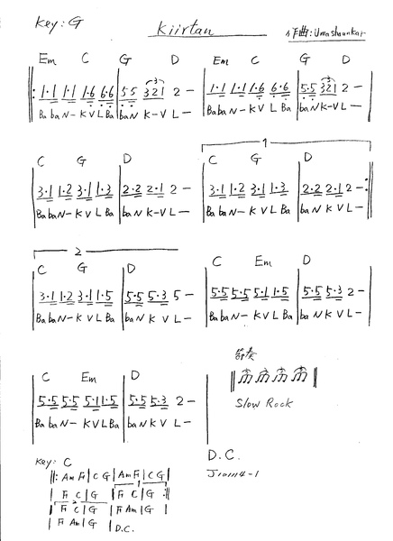 3:吉它的右手刷拍子時,與正常節奏不同,要多注意.帶唱團體kiirtan時注意腳步的調整.比正常要慢才好帶.